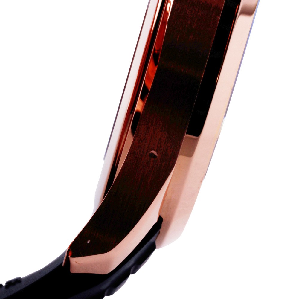 There are scratches on the bezel (at 12 o’clock, 2 o’clock, 6 o’clock, and 8 o’clock) and dents on the case side.