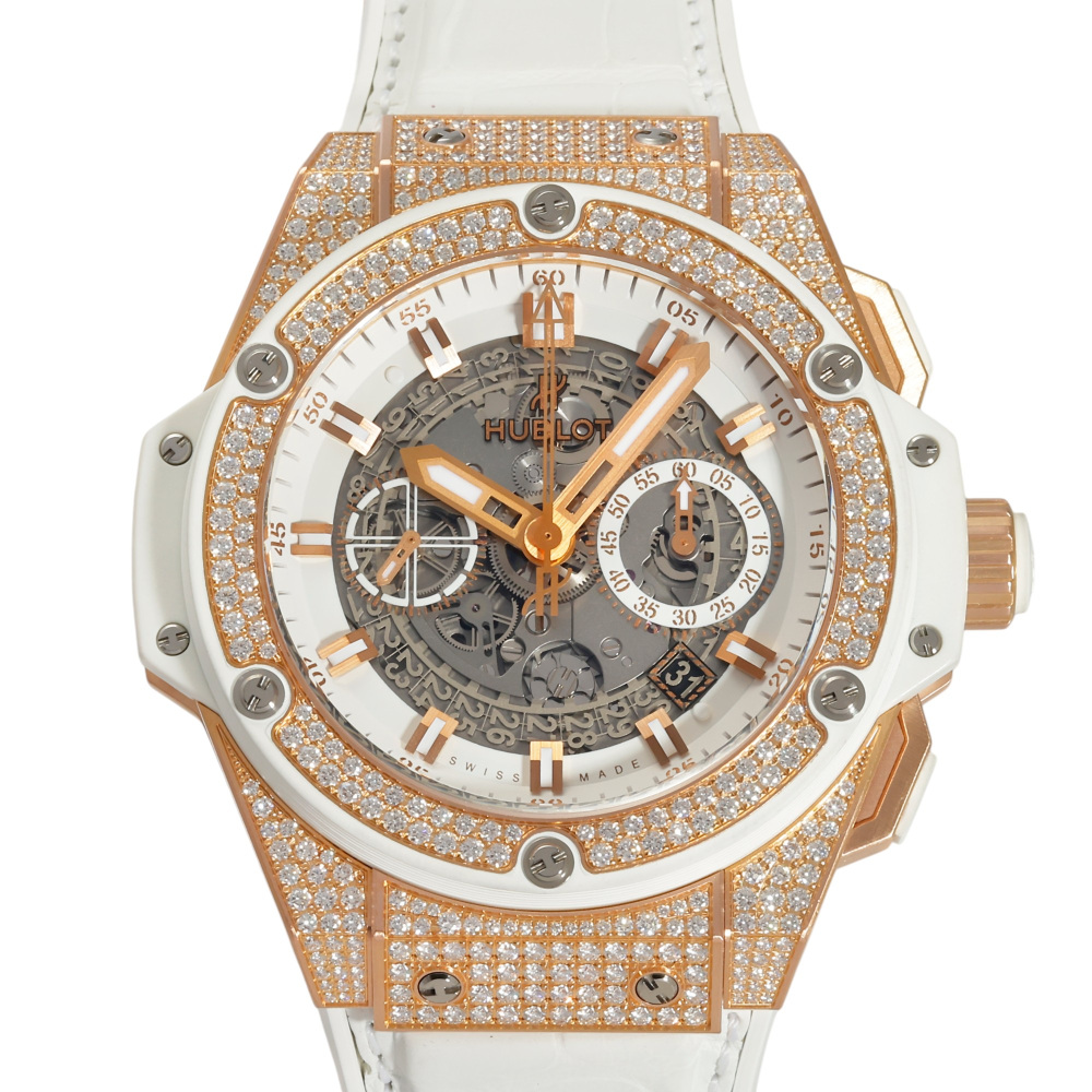[USED]701.OE.0128.GR.1704 King Power Unico King Gold White Pave | Introducing Hublot W249924
